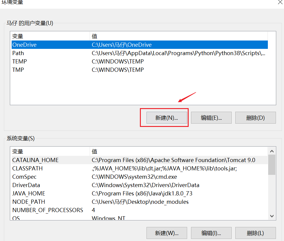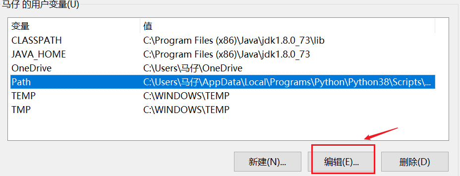 7.接下来我们添加第三个变量,第三个变量名称为“PATH”,可以看到在我们的用户变量里面已经存在了“PATH”变量,所以这里我们不点击“新建”,这里我们点击“编辑”path变量