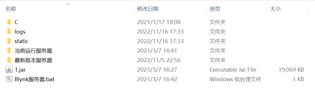 2.下载完成之后把文件解压,并重命名“XX.jar”,名称自己定义,最好是数字或者英文(为了后面执行JAVA命令方便),放在电脑的C盘(或者D盘)新建的blynk文件夹里