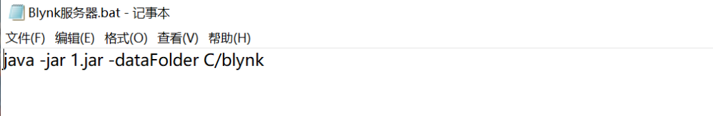 3.在新建的blynk文件夹里新建一个名为“启动服务器”的txt文本,并在文本里添加代码:java -jar 1.jar -dataFolder C/blynk然后保存,注意服务器文件存在哪个盘符下,就写相应的盘符