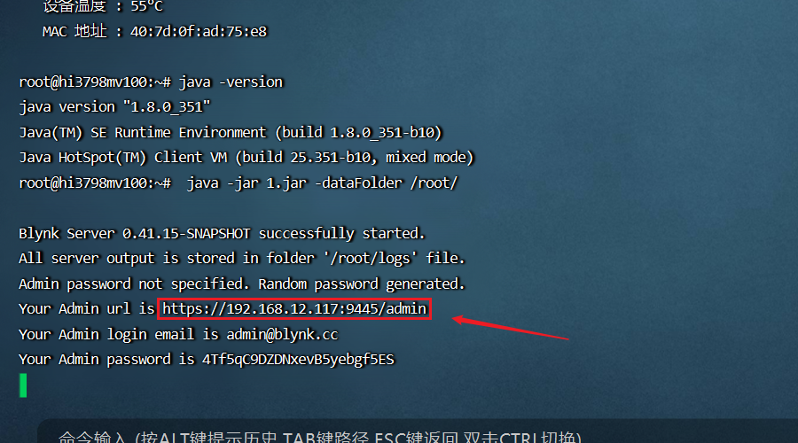 1.在终端输入 java -jar 1.jar -dataFolder /root/,等待10秒钟左右,出现以下画面