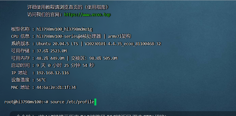 10.回到终端首页输入source /etc/profile,此时终端应出现重新进入状态